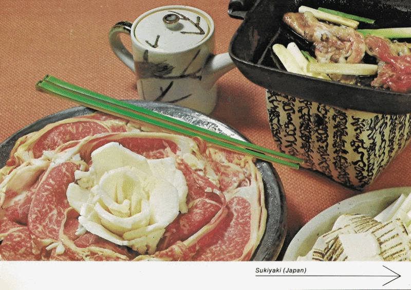 This week we have one of my favorite English recipes, Her Majesty’s very own “drop scones.” It has a place of honor in my first cookbook. Then we travel back in time to 1971 Japan for an easy home cook’s take on Sukiyaki, and follow that with an Air France in-flight cookbooklet spectaculaire from 1961. Don’t miss that one, it is fantastique!